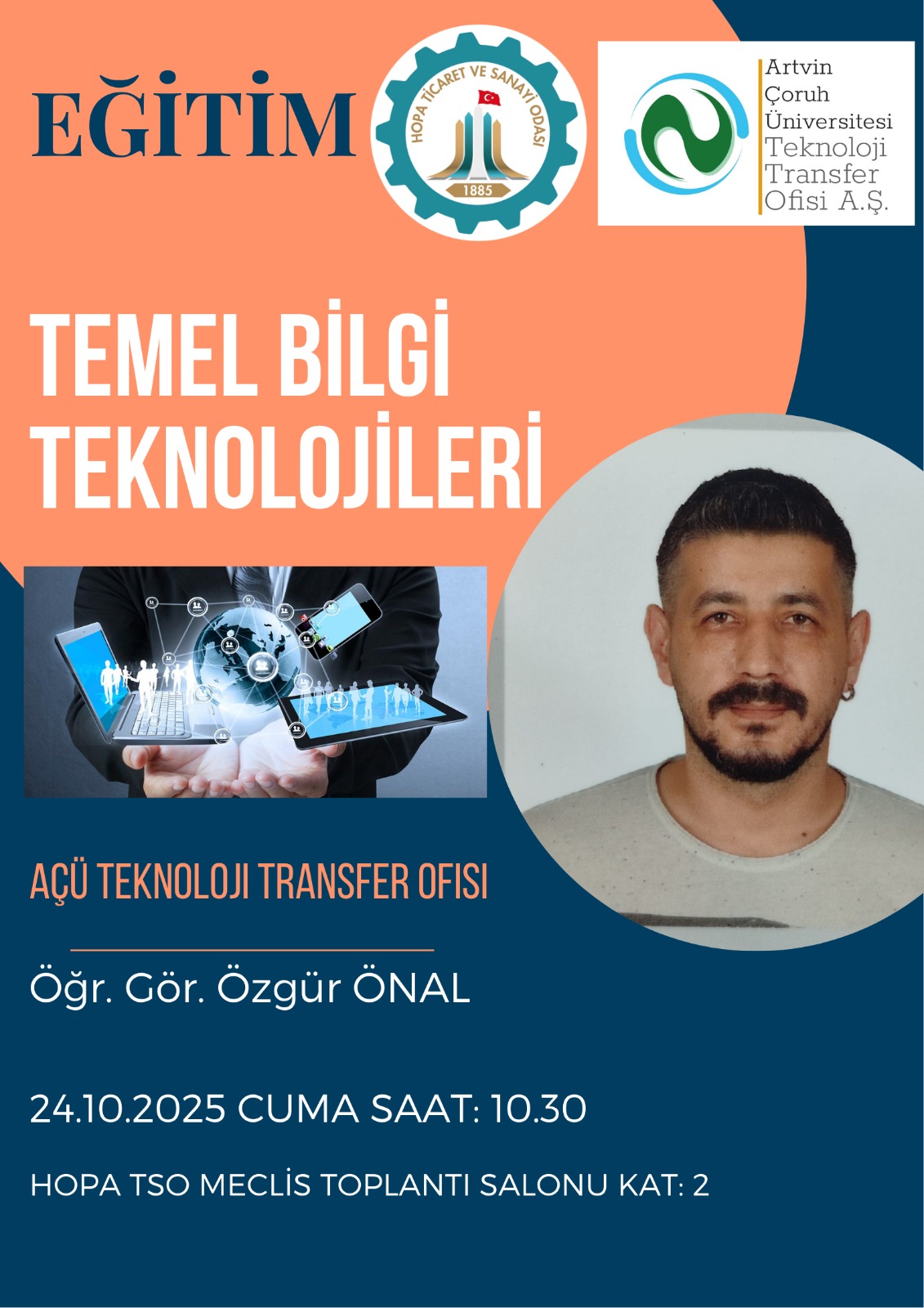 Artvin Teknoloji Transfer Ofisi – Hopa Ticaret ve Sanayi Odası iş birliği ile planlanan Temel Bilgi Teknolojileri Eğitimine tüm üye ve ilgililerin katılımlarını bekliyoruz.